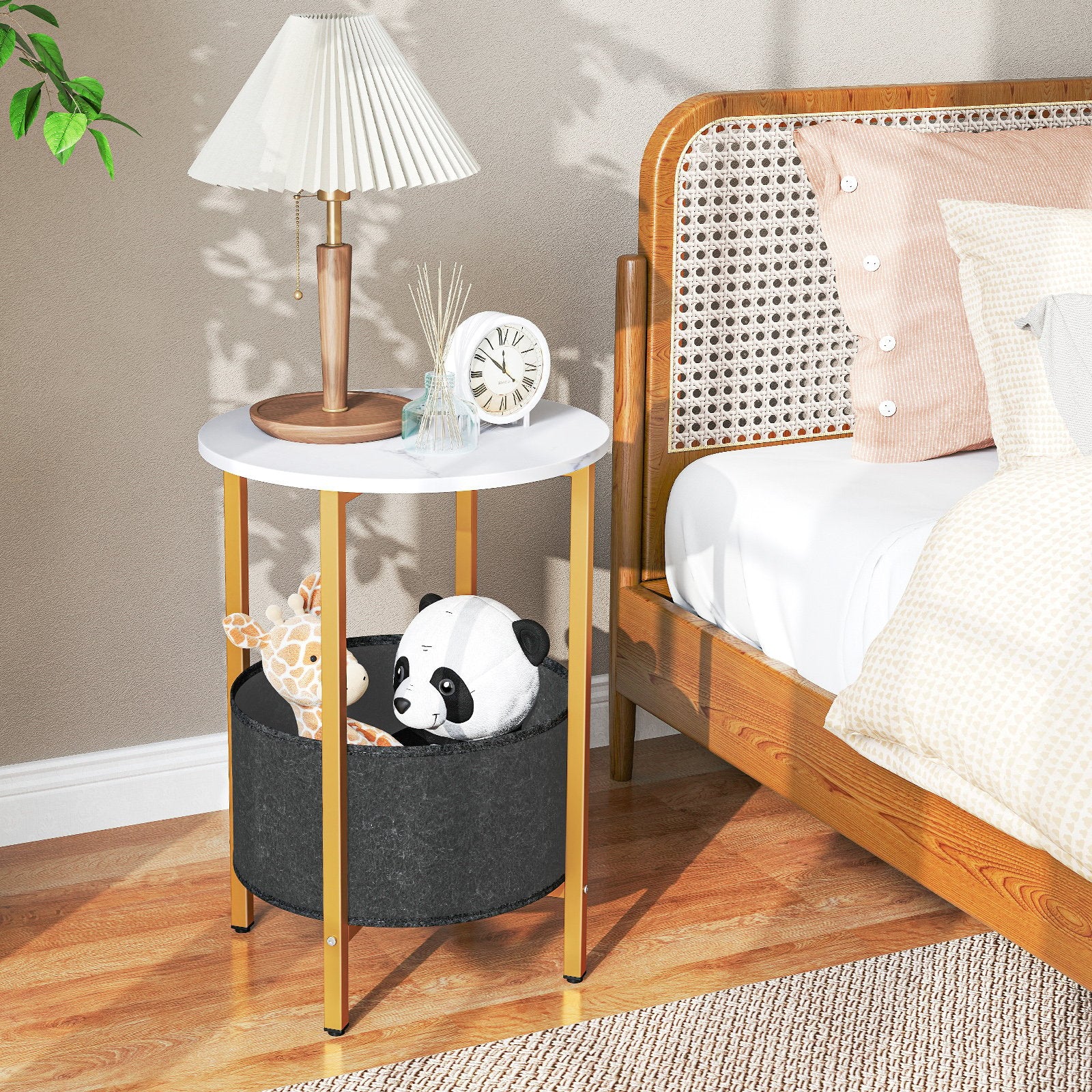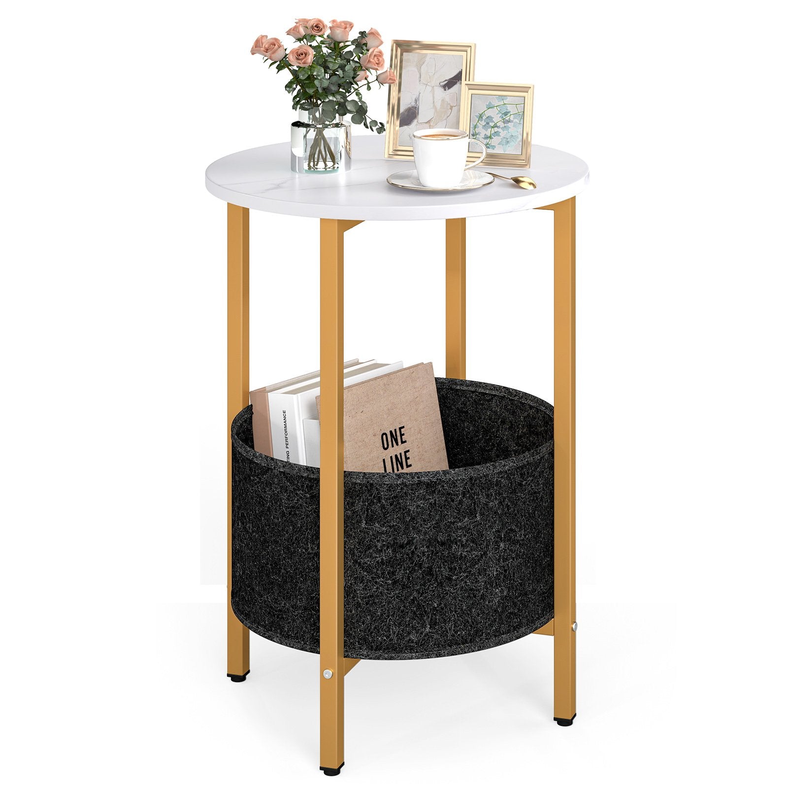 ● Ample Storage Space: The spacious 17.5" round tabletop offers ample room for your coffee books or decorations. Besides the side table boasts a felt basket underneath that ensures a tidy place to store magazines blankets or remote controls.