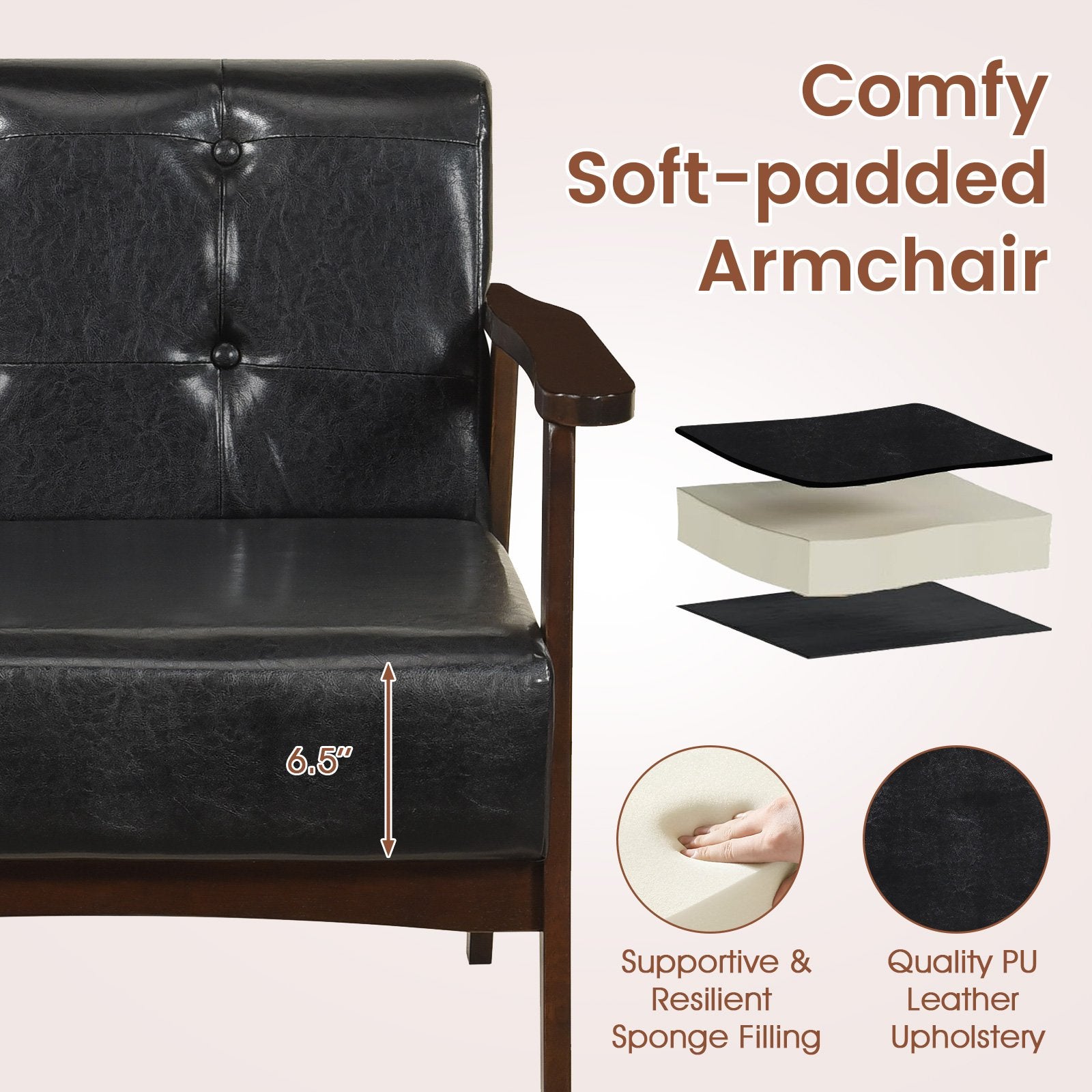 Rubber Wood Frame Accent Chair with Armrest for Living Room-Black