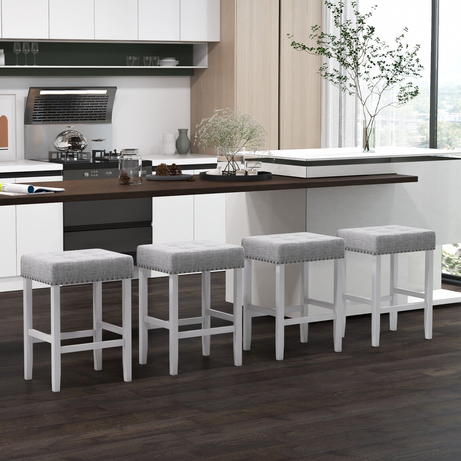 ● Counter Height Stools: These bar stools measure 24.5" high which is suitable for counters with 35"-39" height. On the other hand the backless design helps you to easily store them under the counter when not in use.