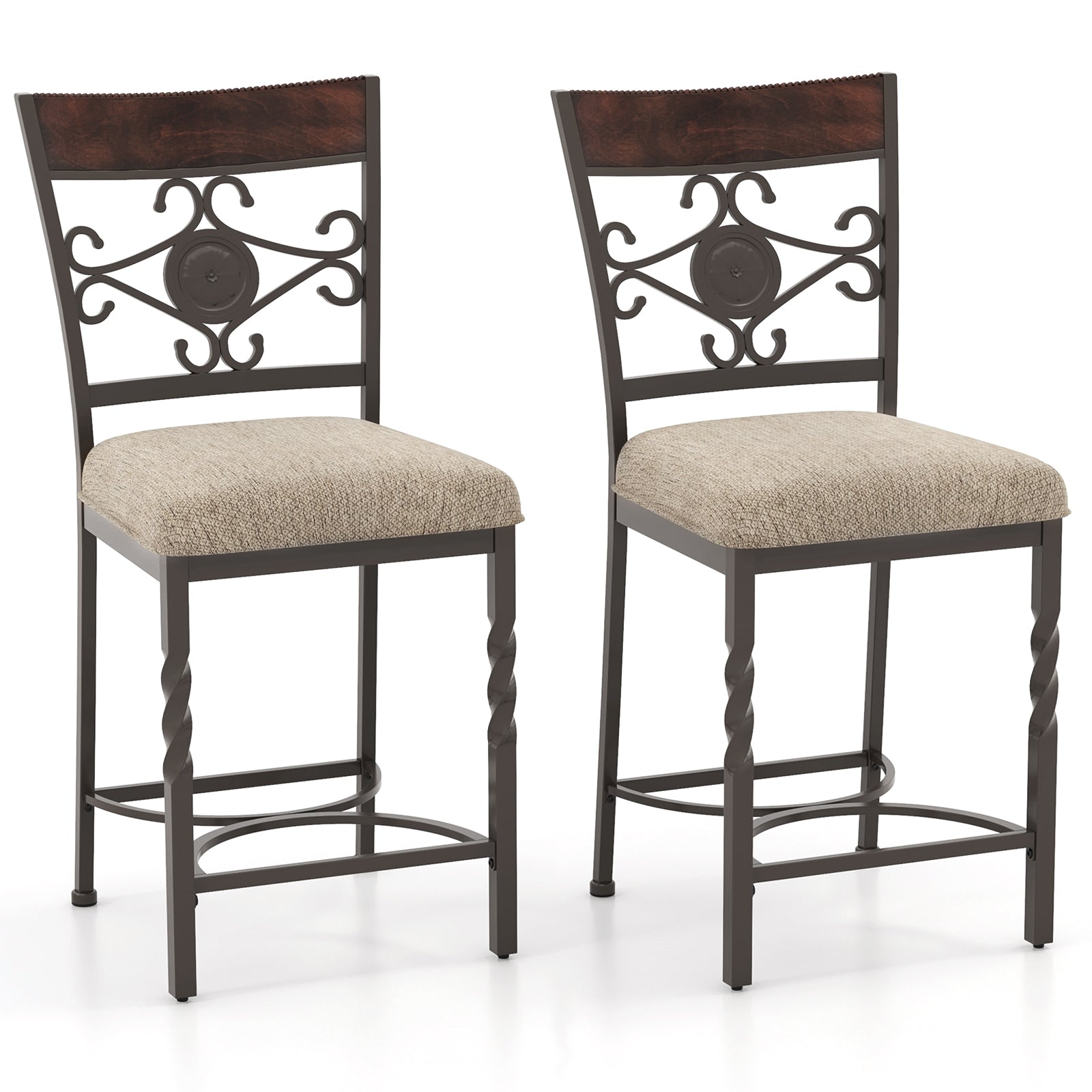 ● Attractive Bar Stools: The back of each chair is embellished with wood grain bar and decorated with exquisite patterns to bring a touch of texture and elegance to your kitchen island or dining area. Plus the metal legs are also equipped with spiral decoration to add more charm.