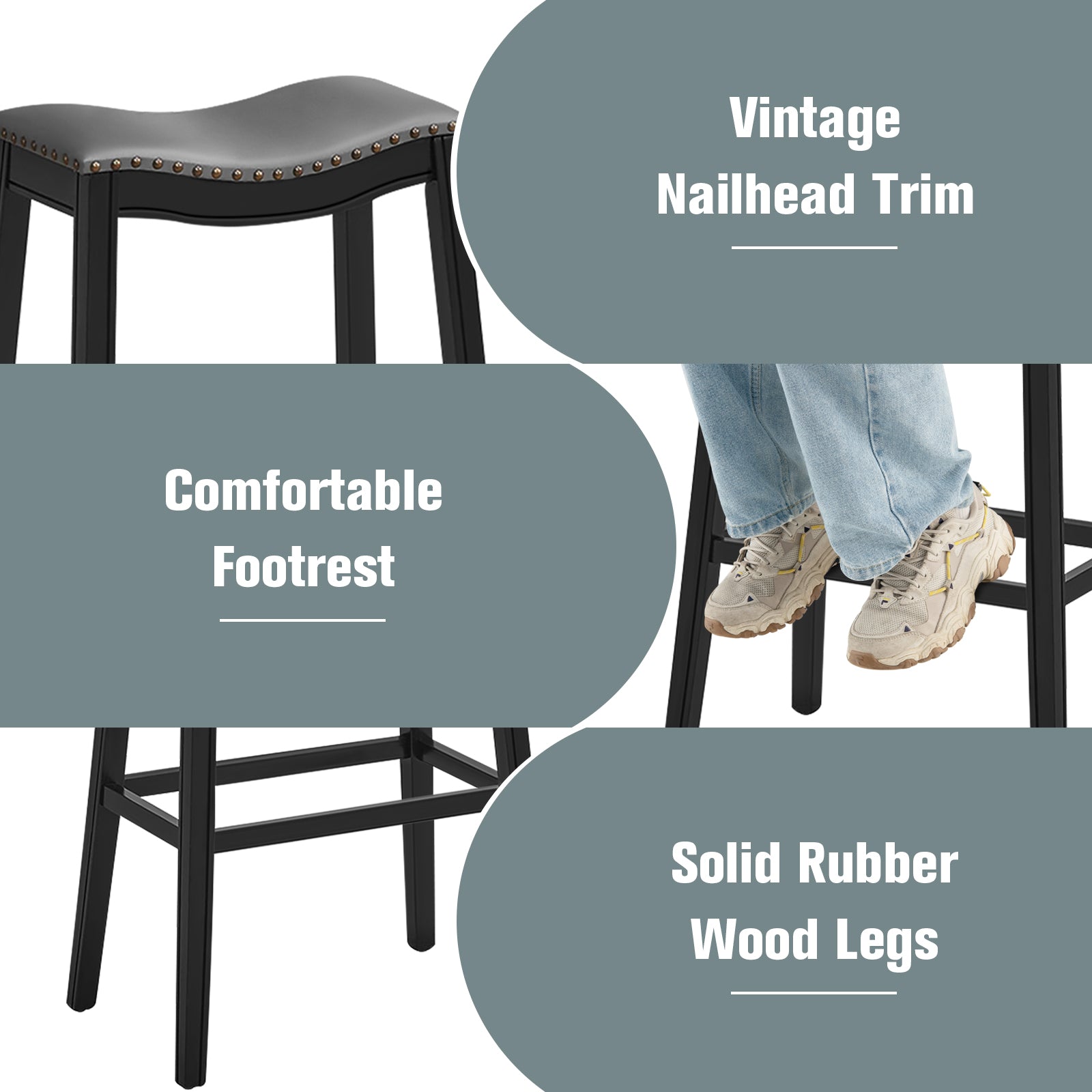 ● Ergonomic Saddle Stools: The backless bar stool features a saddle shape which fits your body's curve well. With an appropriate height of 29" you can comfortably sit beside your kitchen island or bar table and become more relaxed by placing your feet on the 4 footrests.