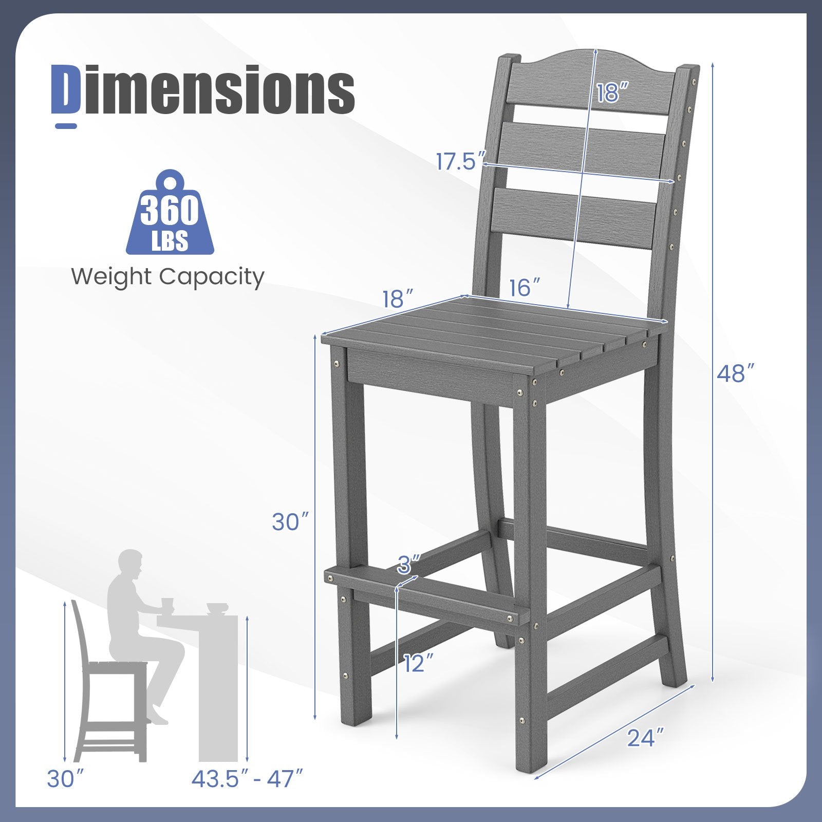 ● HDPE Material: Different from normal wood which is easy to crack the selected HDPE material makes the outdoor bar stools anti-rack all-weather and sun-protective to withstand changing weather.