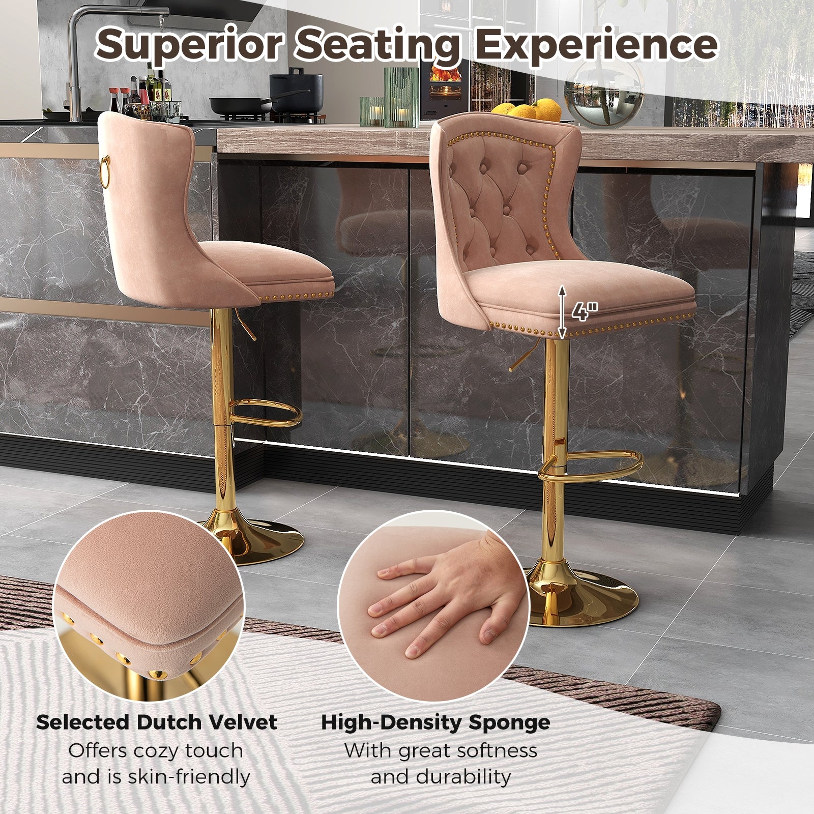 ● Customized Bar Chair: Each bar stool provides a 26.5"-34.5" adjustable seat height giving your guests full freedom to find the comfiest position. Meanwhile its seat is 360° swivel catering to the need to socialize with friends in different directions.