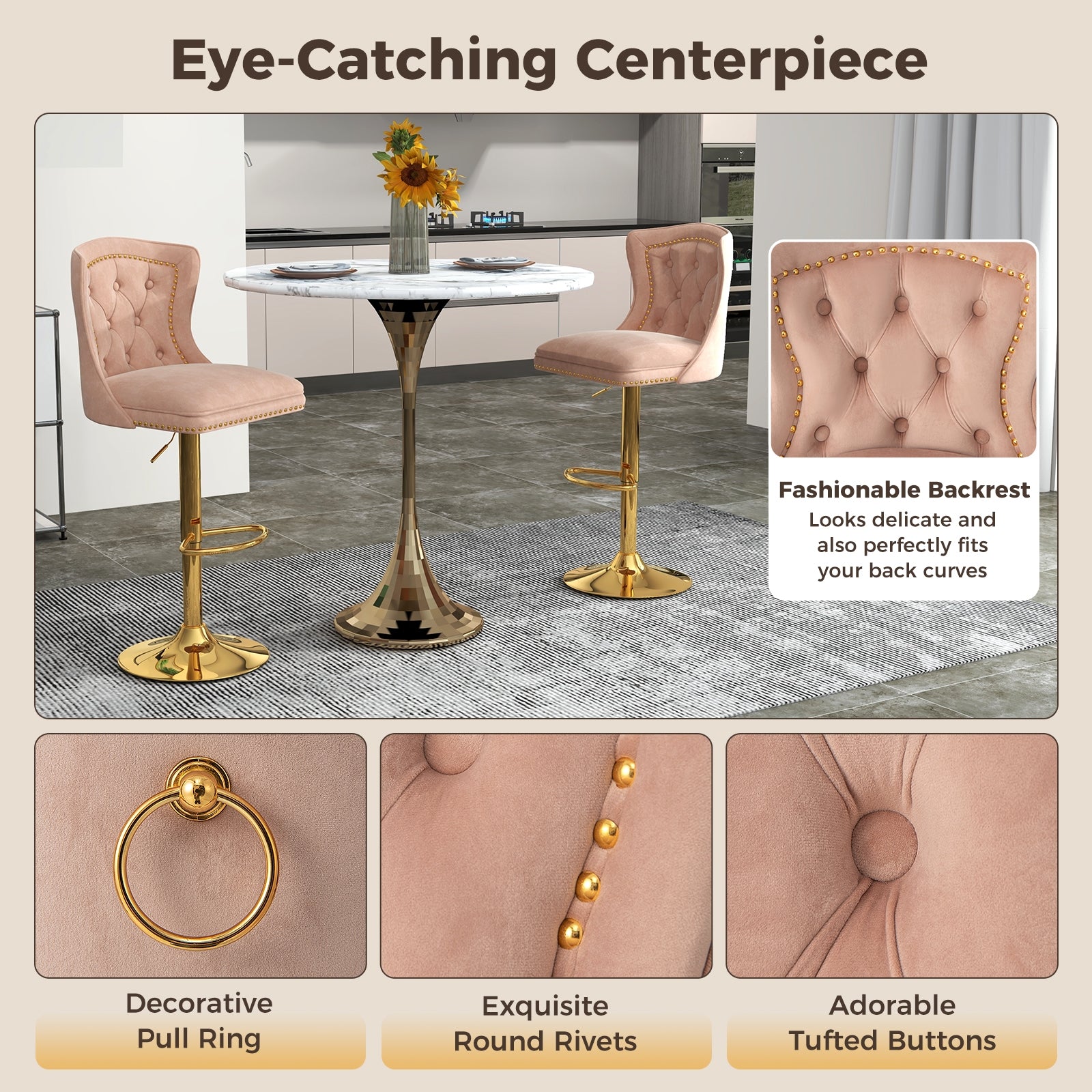 ● Charming Appearance: Each bar stool combines delicate rivets and adorable tufted buttons and the result is an eye-catching centerpiece that easily blends with any decorations. Also a pull ring is included to highlight an elegant design while working as a handle for easy movement.
