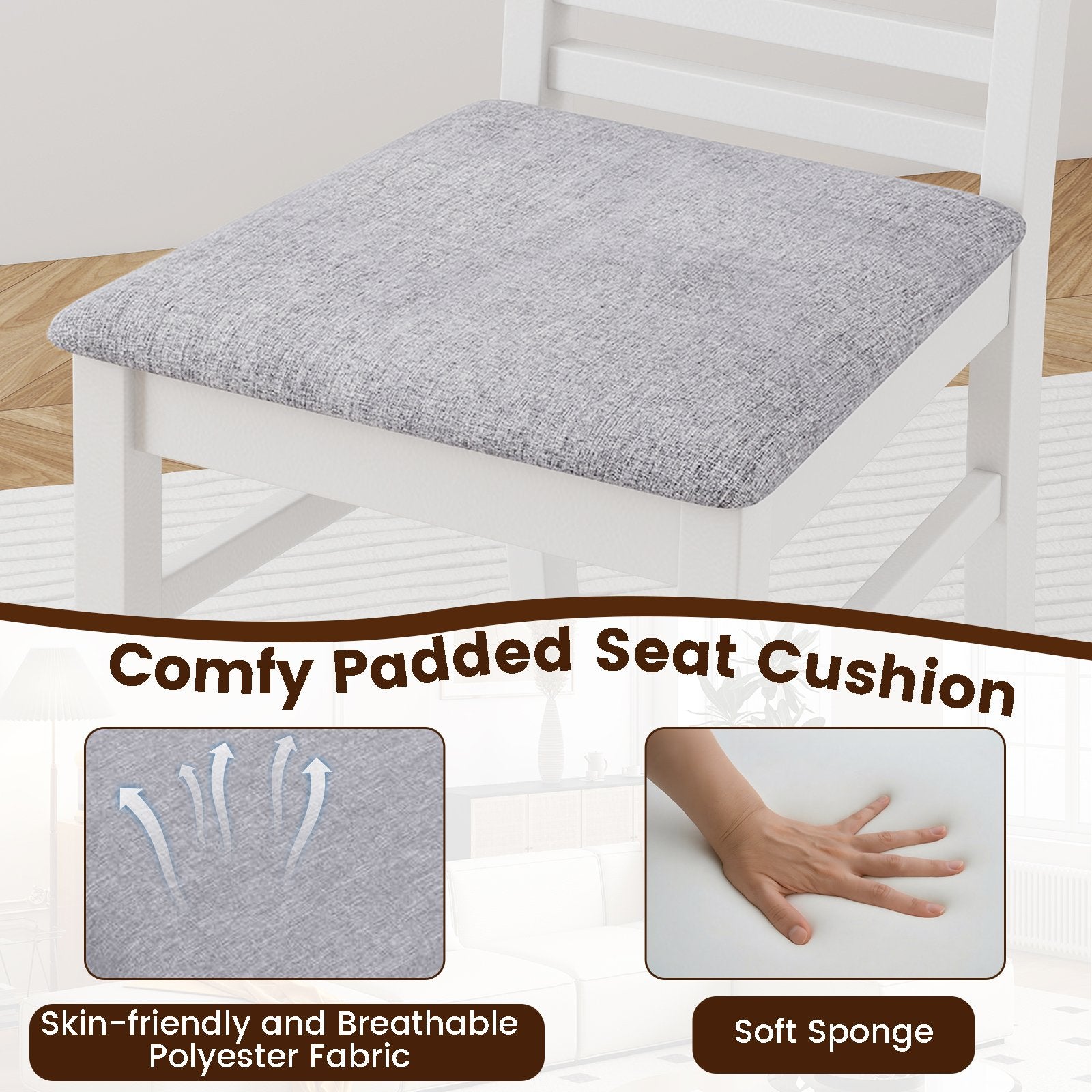 Comfy Sitting Experience: The seat cushions with soft sponge filling offer a supportive and pleasant dining experience. Plus the chairs are covered with luxurious PU leather that is waterproof and stain-resistant making maintenance a breeze while adding a touch of sophistication.