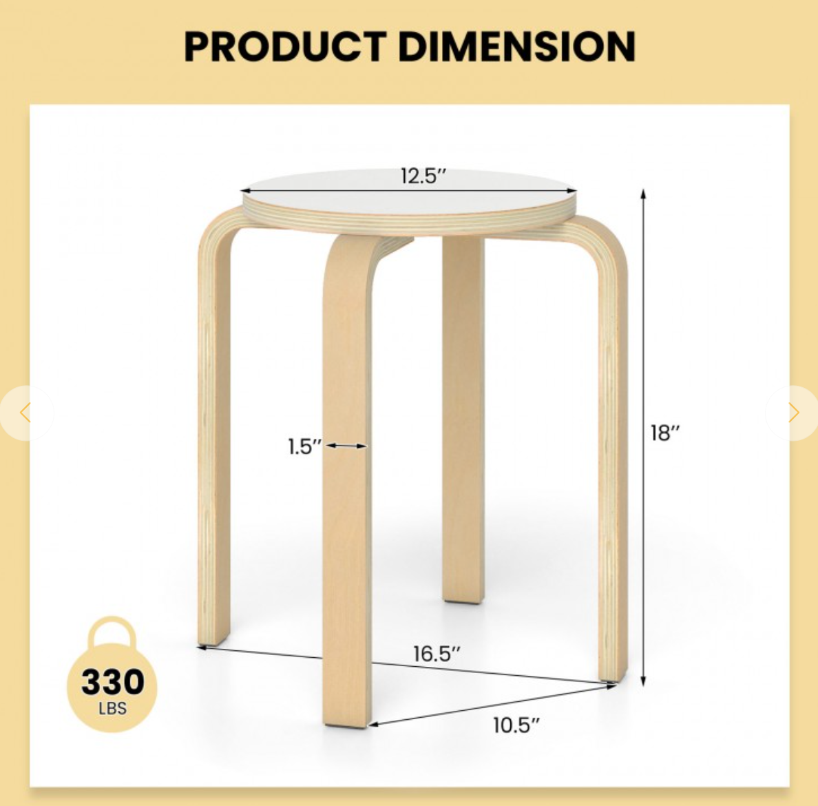 ● Ergonomic and Durable Construction: Made of high-quality solid birch wood, the stools are refined with natural finish. The curved edge design reduces leg pressure fitting your body curve. Four sturdy legs with triangular distributed screws fixed in the bottom of the smooth seat ensure your safety and comfort .