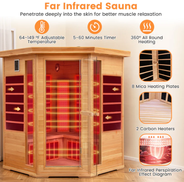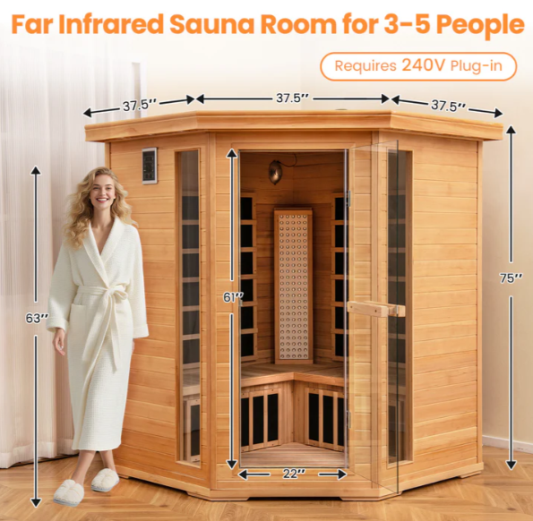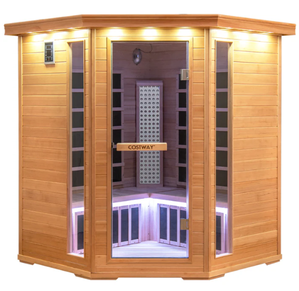 1. Costway Corner Infrared Sauna 3-5 Person With Bonus Red Light Therapy Panel