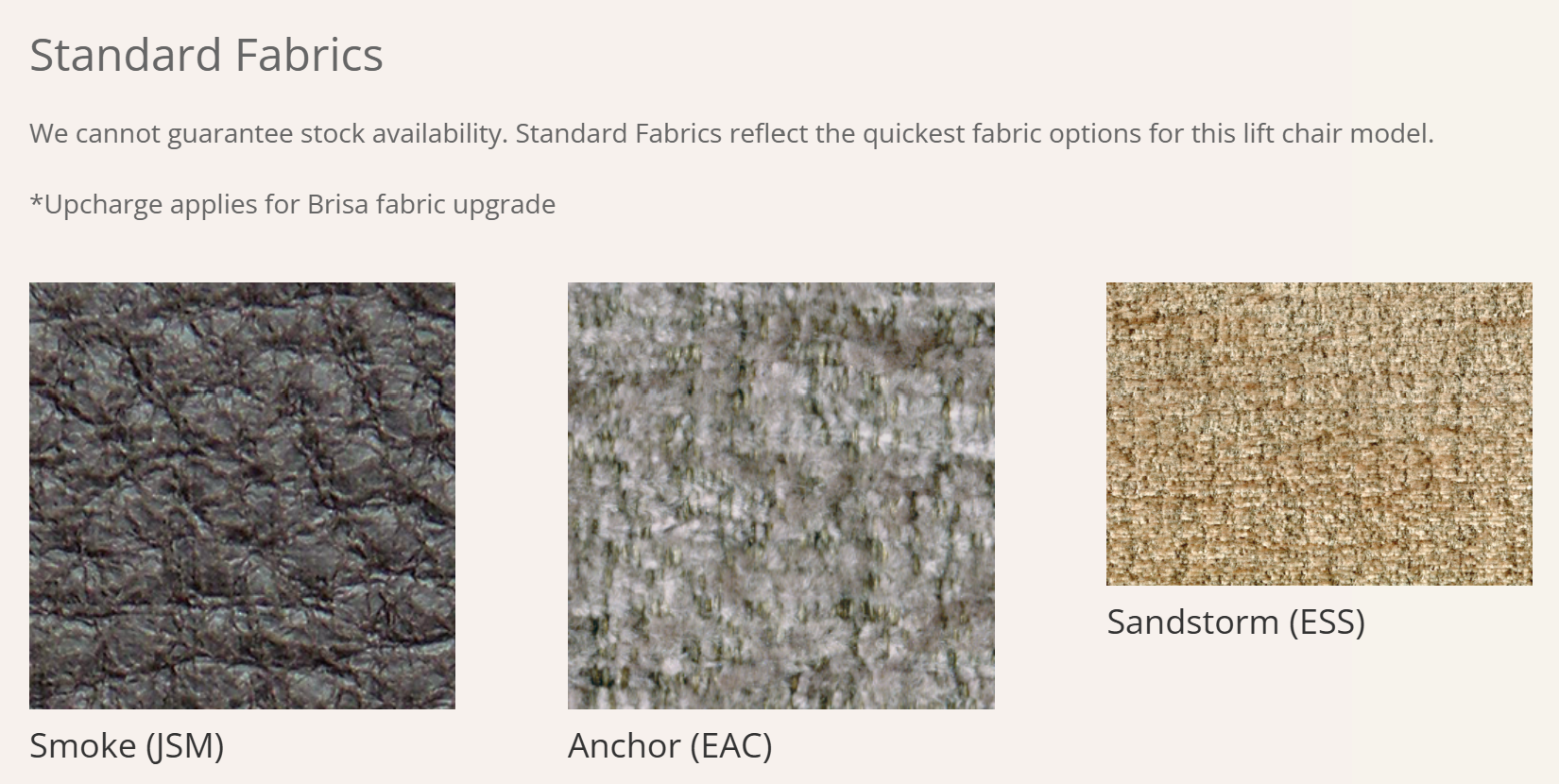 *To add a deluxe Heat & Massage System, footrest extension or custom fabric option please contact Relaxacare