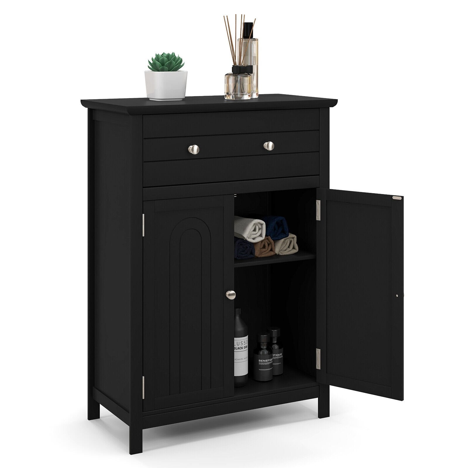 ● Plenty of Storage Space: This floor cabinet features a spacious top a large capacity drawer and a 2-door cabinet with a 3-position adjustable shelf offering multiple storage options for your items. It is ideal for storing your toiletries towels books tableware decorations and more.
